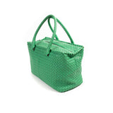Details: Teal Intrecciato Nappa Leather / Gunmetal Hardware / Dual Top Handles / Brown Suede Interior Lining / Single Compartment / Zip Pocket and Flat Pocket / Zipper Closure at Top