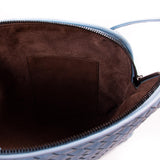 Details: Sky Blue Intrecciato Leather / Black Metal Hardware / Long Adjustable Shoulder Strap / Brown Suede Lining / Zipper and Flat Pocket at Interior / Dual-Way Zipper Closure at Top