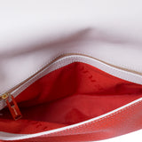 Details: Orange Grained Leather / Gold-Tone Hardware / Chain-Link and Leather Pad / Grey Leather Interior Under the Flap / Orange Fabric Interior Lining / Zipper Pocket at Inside / Fold-Over Front with Clip Lock Closure