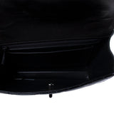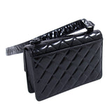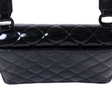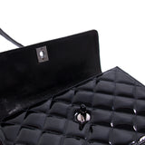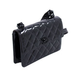 Details: Black Quilted Patent Leather / Black Resin Hardware / One Shoulder Strap / Exterior Pocket at Back / Leather Interior Lining / Single Compartment with Zipper and Flat Pocket / Turn-Lock Closure at Front Flap
