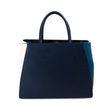 Details: Blue, Cream and Navy Blue Leather / Silver-Tone Hardware / Dual Rolled Handles / Detachable Shoulder Strap / Protective Studs at Base / Fabric Interior Lining / Three Compartments, One with Zipper Closure / Dual Flat Pockets at Inside