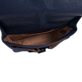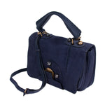 Details: Navy Blue Suede / Gold-Tone and Metal Hardware / Adjustable and Detachable Shoulder Strap with a Top Handle / Leather and Fabric Interior Lining / Single Compartment with Three Flat Pocket / Push Lock Closure at Flap