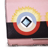 Details: Black and Pink Calf Leather / Silver Tone Hardware / Detachable Chain Shoulder Strap / Multicolor Prints and Studs Embellishments at Front Face / Grey and Pink Fabric Lining at Interior / Zip Pocket at Inside and Six Card Slots / Magnetic Snap Closure at Front Flap
