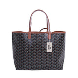 Details: Black, Brown and White Goyardine Coated Canvas / Brown Leather Trim / Dual Rolled Handles / Single Compartment / Natural Fabric Lining / Detachable Pocket / Open Top
