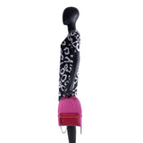 Details: Pink and Red Textured-Leather / Gold-Tone Hardware / Embossed Interlocking GG Logo / Leather Top Handle / Dual Chain-Link Straps / Zipper Pocket at Front / Fabric Interior Lining with Open Pockets / Two-Way Zipper Closure