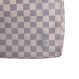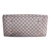 Details: Grey and White Damier Azur Coated Canvas / Gold-Tone Hardware / Single Rolled Top Handle / Protective Studs at Base / Micro-Fiber Interior Lining / Seven Pockets at Inside, One with Zipper Closure / Open Top