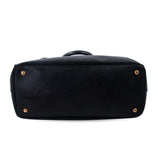 Details: Black Saffianoe Leather / Gold Tone Hardware / Dual Rolled Handles / Three Compartments, Two with Zipper Closure / 3 Pockets at Inside, One with Zipper.