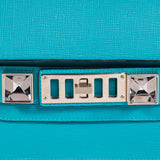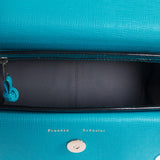 Details: Blue Calf Leather / Silver Tone Hardware / Gunmetal Embellishment At Front / Detachable Adjustable Shoulder Strap / Magnetic Fastening At Front Flap / Exterior Zip Pocket At Back / Black Fabric Interior / Dual Compartments / Zip Pocket At Interior Wall / Turn Lock Closure At Front