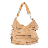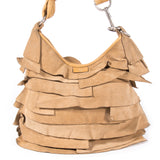 Details: Tan Suede / Silver Tone Hardware / Tan Leather Flat Shoulder Strap / Layered Suede Accent Throughout The Exterior / Dark Brown Suede Interior Lining / Single Zip Pocket At Interior / Magnetic Snap Closure At Top