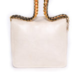 Details: White Leather / Shoulder Bag / Gold Chain / Faux Leather Handle / Flap Front And Snap Closure / Stella McCartney Logo disc And Three Inside Compartments / Black Jacquard Interior Lining