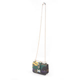Details: Green, Yellow, Black and Purple Camo Leather and Fabric / Gold-Tone Hardware / Chain-Link Shoulder Strap / Green Leather Lining / Single Compartment with One Flat Pocket / Studs Embellishment at Flap Face / S-Lock Closure