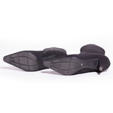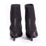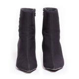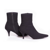 Details: Black Suede Prada / Pointed Toe Ankle Boots with Tonal Stitching / Covered Heels / Zip Closure at Sides
