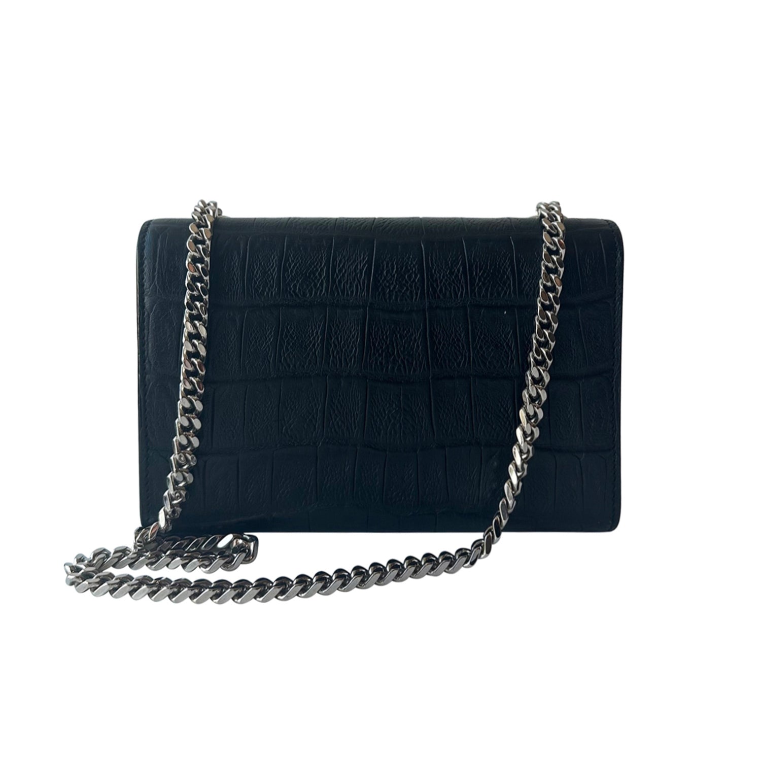 Black Crocodile Embossed Leather / Silver-Tone Hardware