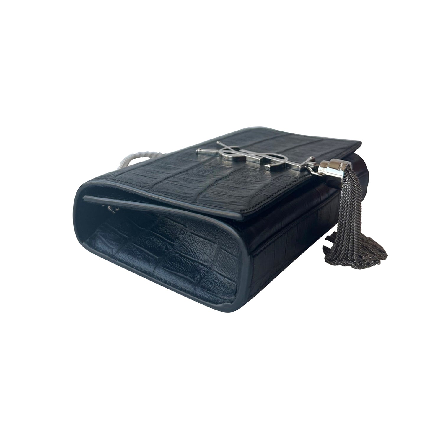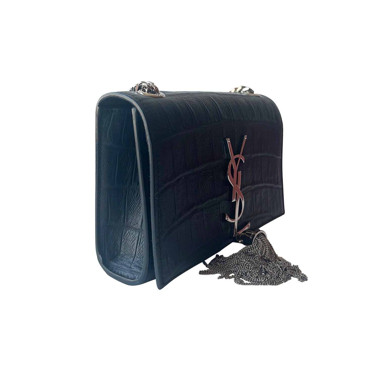 Description: Authentic Pre-Owned Saint Laurent Small Kate Crocodile Emblossed Shoulder Bag