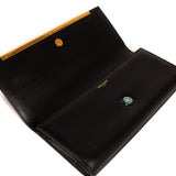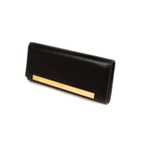 Details: Black Soft Leather / Gold-Tone Hardware / Metal Plate at Front / Fabric Lining at Interior / Single Compartment / Single Slit Pocket at Interior / Magnetic Snap Closure at Front Flap