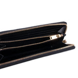 Details: Black Grain De Poudre Embossed Leather / Gold-Tone Hardware / Logo at Front / 3 Compartments, One with Zipper / 2-Bill Compartments / 12-Card Slots / Zipper Closure Around
