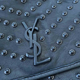 Black Crinkled Calfskin Leather with Black Studs at Front