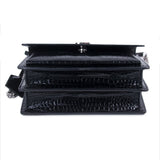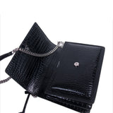 Details: Black Shiny Crocodile Embossed Leather / Silver-Tone Hardware / Logo at Face / 2-Way Shoulder Strap / Exterior Pocket at Back / Suede Interior Lining / Dual Compartment / 2 Flat Pockets at Inside / Magnetic Flap Closure