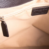Details: Brown And Tan Canvas Shoulder Bag / Silver Tone Hardware / Four Exterior Pockets With Snap Closures / Interior Beige Nylon Lining / Single Zip Pocket At Interior Wall / Snap Closure At Top / Adjustable Shoulder Strap