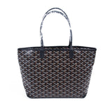 Details: Black, Brown and White Goyardine Coated Canvas / Black Leather Trim / Dual Rolled Handles / Single Compartment / Natural Fabric Lining / Pocket at Inside / Zipper Closure at Top