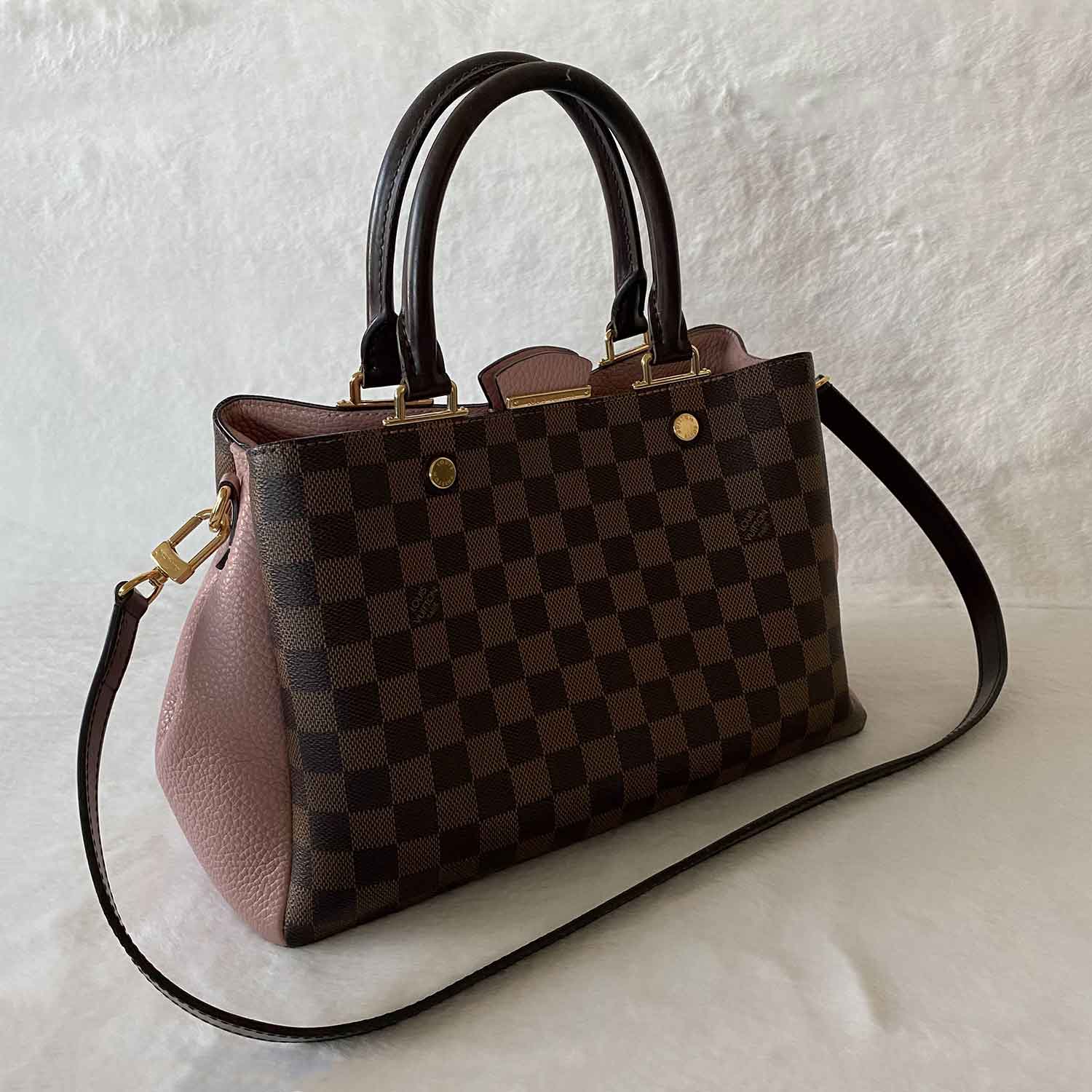 Brown Damier Ebene Coated Canvas and Pink Leather / Gold-Tone Hardware