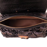 Details: Brown Monogram Coated Canvas / Brass Hardware / Single Handle / Tan Vachetta Leather Trim / Grey Silkscreen with Black Floral Sequin and Velvet Flocking Throughout the Exterior / Brown Fabric Lining / Single Flat Pocket / Zip at Top and S-Lock Closure at Front Flap