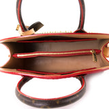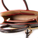 Details: Brown and Tan Monogram Coated Canvas / Gold-Tone Hardware / Toron Handles / Red Calf-Hair Back / Red Edge Dyeing / Studded Outer Front Pocket / Central Inner Zipped Pocket / Large Inner Flat Pocket / Double Smartphone Pocket / Knotted Leather Ribbons / Four Bottom Brass Studs