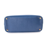 Details: Navy Blue Saffiano Leather / Gold-Tone Hardware / Dual Rolled Handles / Black Fabric Lining / Three Compartments, Two with Zip Closure / Four Pockets at Interior, One with Zip Closure.