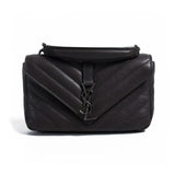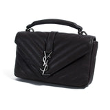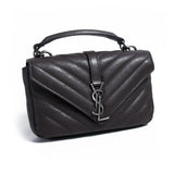 Details: Grey Chevron Quilted Leather / Tonal Hardware / Top Handle / Detachable Shoulder Strap / Logo at Front / Pocket at Exterior Back / Dual Compartments / Six-Card Slots / Magnetic Snap Closure at Front